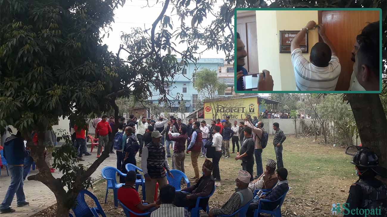नेपाल पक्षधरले रावलको नाम हटाएर भट्टको लेखेको भन्दै नेमप्लेट निकाले। यसपछि दुई पक्षबीच विवाद भएको हो।