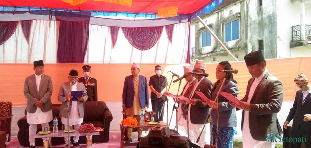मन्त्रीहरूलाई प्रदेश प्रमुख सोमनाथ प्यासी अधिकारीले पद तथा गोपनियताको सपथ खुवाए भने मुख्य मन्त्री राईले राज्य मन्त्रीलाई सपथ खुलाएका छन्।