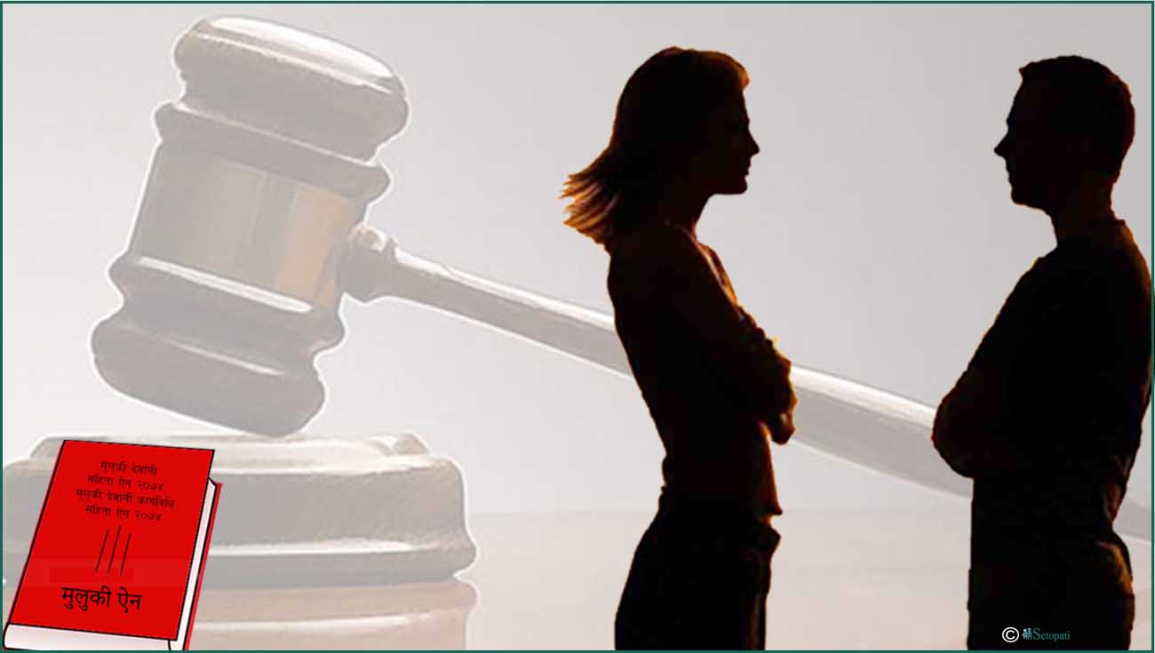 नयाँ मुलुकी संहिताले श्रीमान र श्रीमतीबीच सम्पत्तिको हकबारे पनि व्यवस्था गरेको छ। सम्बन्ध विच्छेद हुँदा कस्तो अवस्थामा श्रीमानले सम्पत्ति दिन पर्ने र कस्तोमा दिन नपर्नेबारे व्याख्या गरिएको छ।
