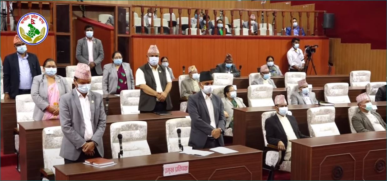 भौतिक पूर्वाधार मन्त्रीलाई संसद् बैठकबाट बाहिर निकाल्न माग गर्दै नेकपा एमालेका सांसदहरूले कर्णाली प्रदेश सभा बैठक अवरूद्ध गरेका छन्।