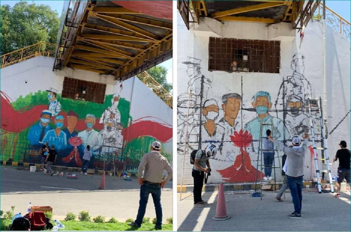 कोरोना महामारीमा अग्रपंक्तिमा खटिरहेकाहरूको सेवामा सम्मान व्यक्त गर्न काठमाडौंका भित्तामा चित्र कोर्न थालिएको छ।