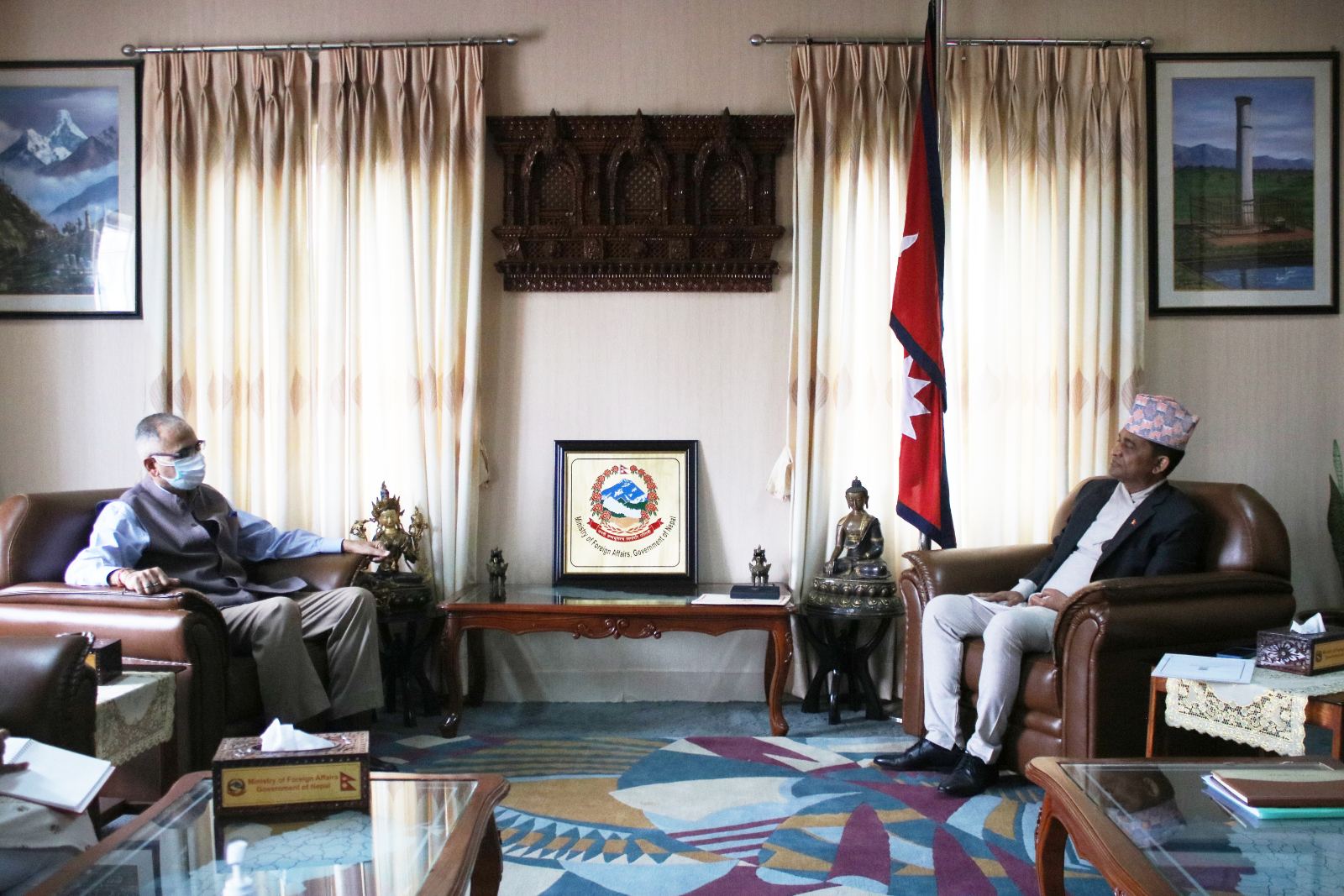 नेपालका लागि भारतीय राजदूत विनय मोहन क्वात्राले परराष्ट्र मन्त्री रघुबीर महासेठलाई भेटेका छन्। भारतीय विदेशमन्त्री यस जयशंकरको सन्देश लिएर राजदूत क्वात्रा, मन्त्री महासेठलाई भेट्न बुधबार परराष्ट्र मन्त्रालय पुगेका थिए।
