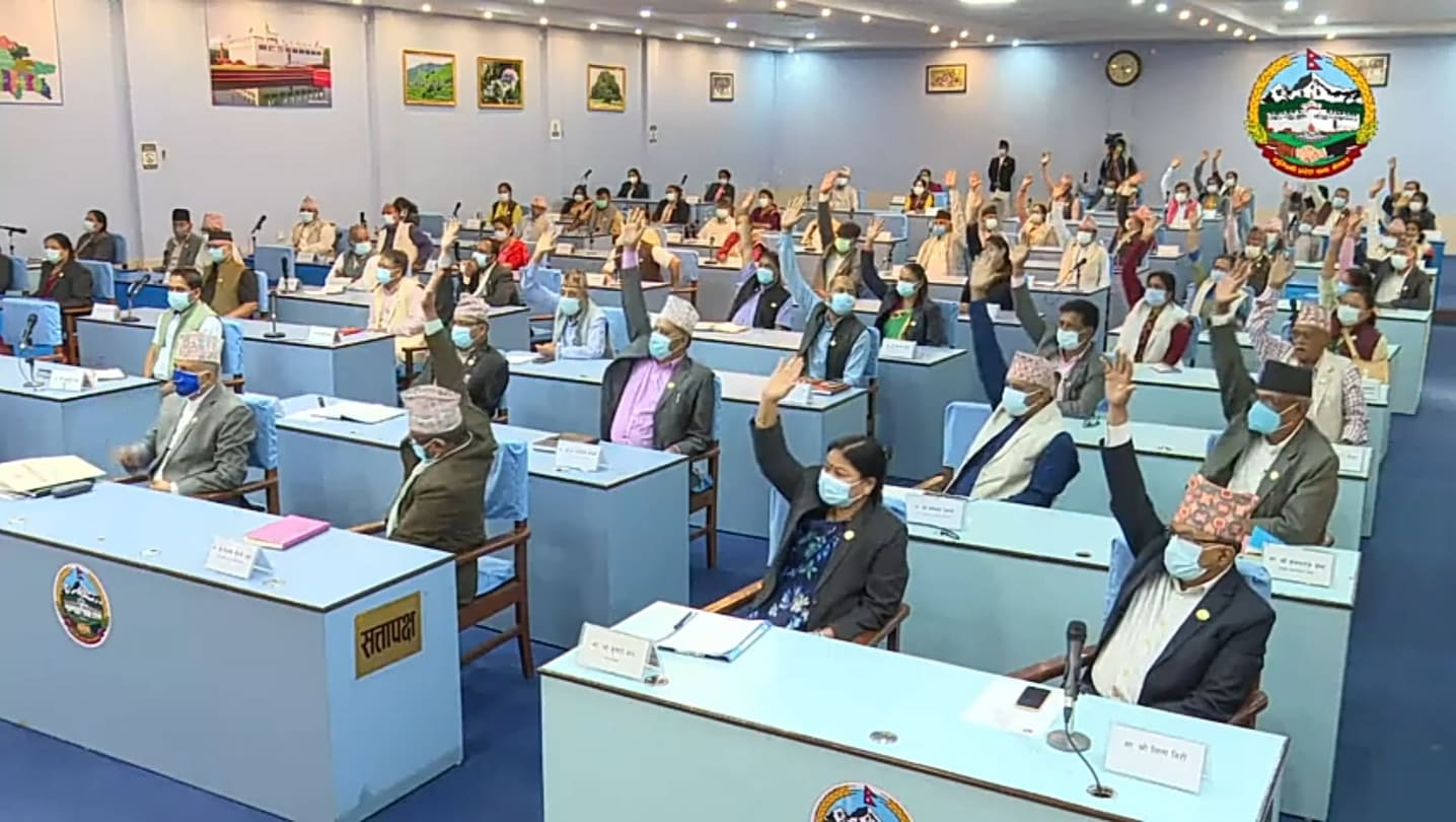 प्रदेशसभाको कार्यसूची अनुसार आइतबार बसेको प्रदेससभा बैठकमा सरकारको नीति तथा कार्यक्रम बहुमतले पारित गरिएको हो।