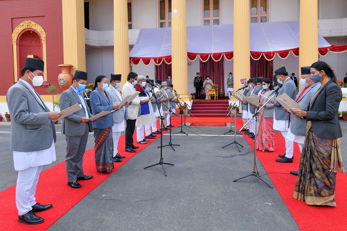 जसपासमेत सरकारमा सहभागी भएपछि तीन उपप्रधानमन्त्रीसहित १२ मन्त्री र दुई राज्यमन्त्रीले जेठ २१ मा शपथ लिएका थिए। त्यस्तै गत जेठ २७ गते गृहमन्त्री खगराज अधिकारीसहित सात मन्त्रीले सपथ लिएका थिए।