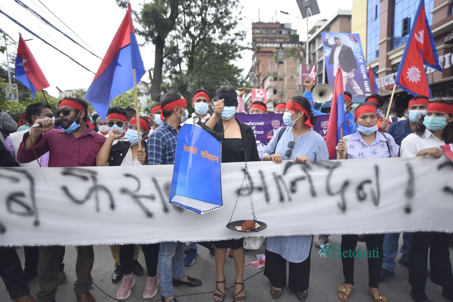 सर्वोच्च अदालतले प्रतिनिधिसभा पुनर्स्थापना र शेरबाहदुर देउवालाई प्रधानमन्त्री बनाउने फैसला गरेपछि प्रधानमन्त्री केपी शर्मा ओली समर्थित युवा संघले काठमाडौंको माइतीघरमा विरोध प्रदर्शन गरेको छ।