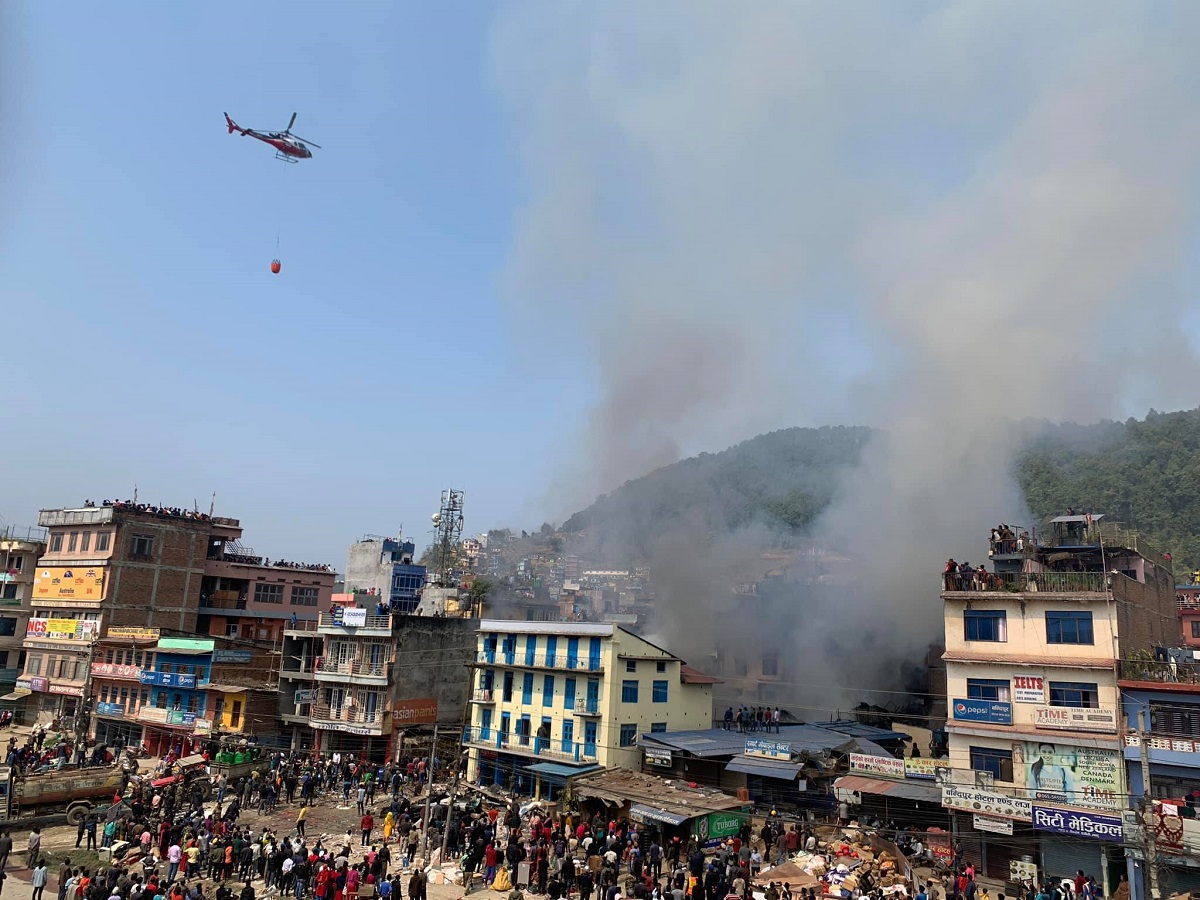 दमकलले मात्र आगो नियन्त्रण असम्भव भएपछि हेलिकप्टर मगाएको व्यास नगरका मेयर वैकुण्ठ न्यौपानेले बताए। आगलागीका कारण ज्वोती सप्लायर्स, बलाराम राना, होमबहादुर गुरूङ, राममाया गुरुङ, लालबहादुर गुरुङ, चन्द्रमाया विक, दीपक श्रेष्ठ लगायतका घरहरुमा समेत क्षति पुगेको छ। कोठा भाडामा लिएर बस्नेहरुका सामाग्री जल्नुका साथै ग्याँस सिलिण्डर समेत पड्किएको मेयर न्यौपानेले बताए।