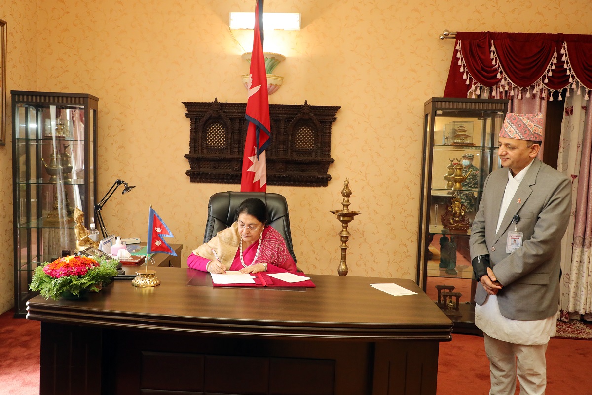 संघीय संसदको दुबै सदनको बैठकबाट पारित भई प्रमाणीकरणको आफूकहाँ आएको विधेयकलाई राष्ट्रपति भण्डारीले संविधानको धारा ११३ को उपधारा २ बमोजिम प्रमाणीकरण गरेकी हुन्।