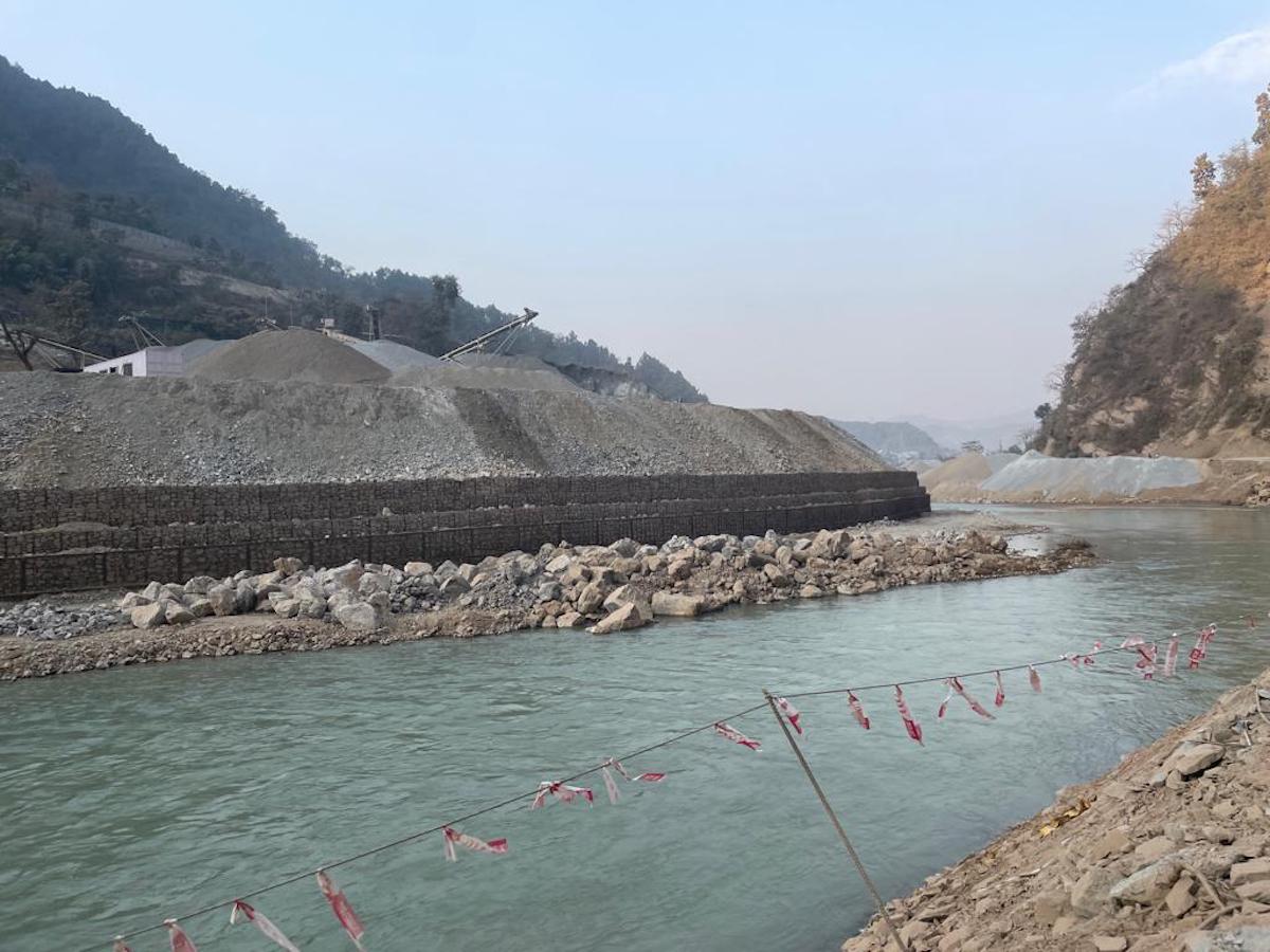 ‘बाँध निर्माणका लागि नदीको बाडो मोड्नु(डाइभर्ट)पर्छ। नदीलाई फर्काउनका लागि दुई वटा सुरुङहरू निर्माणको काम अहिले चलिरहेको छ,’ ईन्जिनियर ठगुन्नाले भने, ‘बाँध बाँध्नका लागि नदीको दुबैतर्फको पहाड काट्ने काम पनि सँगै चलिरहेको छ।’