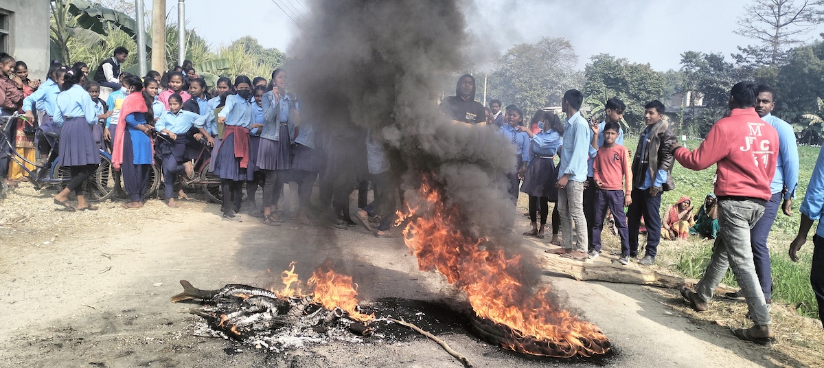 लगत्तै कक्षा ९ र १० विद्यार्थीहरूको एउटा हुल वडा कार्यालय पुग्यो। वडाध्यक्ष अशोककुमार महतो नभेटिएनन्। विद्यार्थीहरूले उनीविरुद्ध नाराबाजी गरे। सडकमा टायर बालेर विरोध प्रदर्शन गरे।