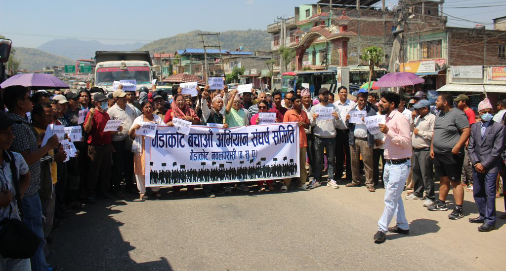 नारायणी नदीको भरतपुरतर्फको किनारमा तटबन्धलगातका संरचना निर्माण कार्य रोक्न माग गर्दै गैंडाकोटबासीले आन्दोलन सुरू गरेका छन्।