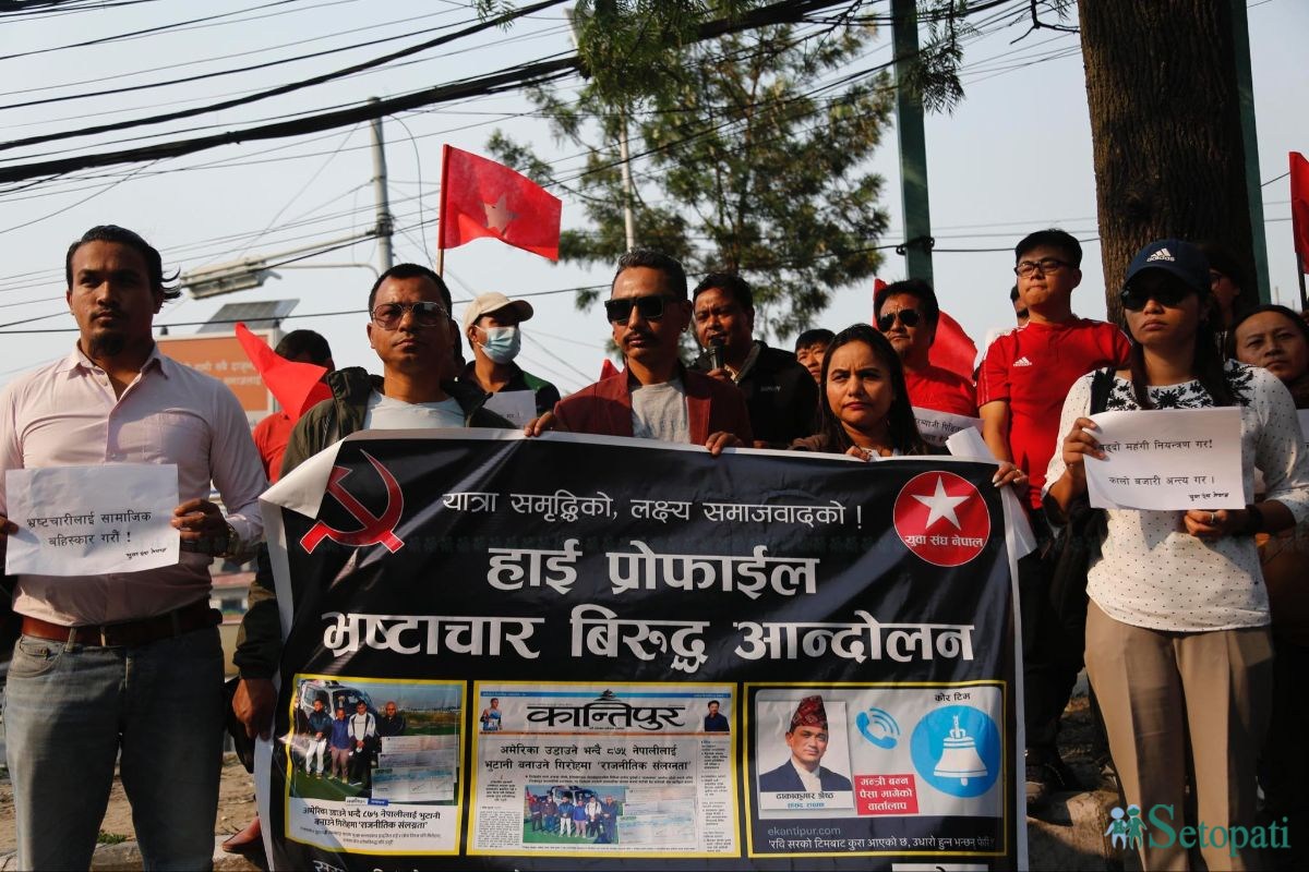 हाई प्रोफाइल भ्रष्टाचारविरूद्ध आन्दोलन नाम दिइएको उक्त प्रदर्शनमा सहभागी भएकाहरूले विभिन्न नाराहरू लेखिएका प्लेकार्ड बोकेका थिए।