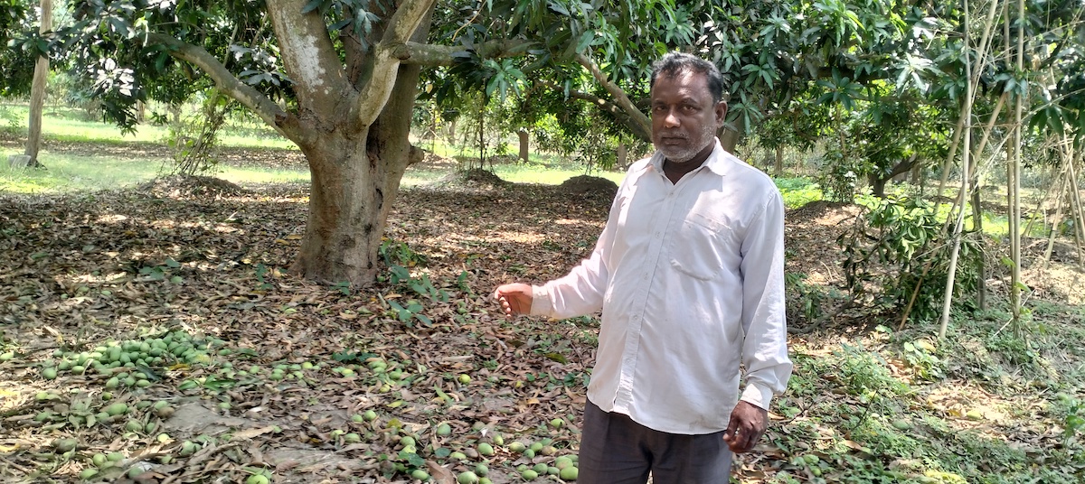 ‘वैशाखमै आधा घण्टासम्म असिना परेको पर्यै गयो। हाम्रो गाउँमा यतिधेरै असिना कहिल्यै परेको थिएन। आधा टिकुला (कलिलो आँप) बर्बाद भयो,’ उनले भने, ‘फेरि वैशाखकै अन्तिम दिन यस्तो बेजोड हावाहुरी आयो कि बाँकी रहेकोबाट आधा जति आँप झर्यो।’