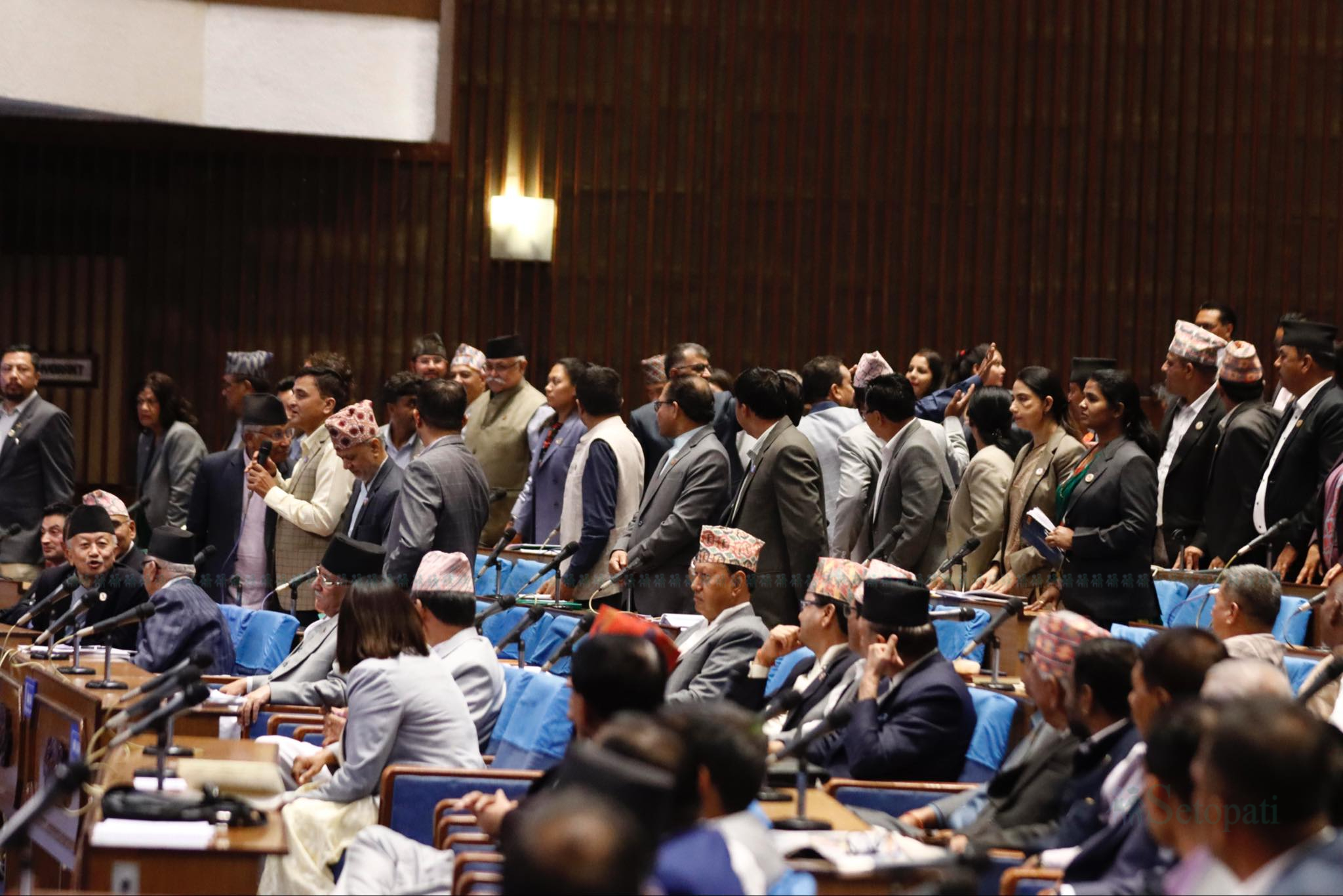 त्यसपछि सत्ता र प्रतिपक्षका सांसदले हो-हल्ला गरेका थिए।