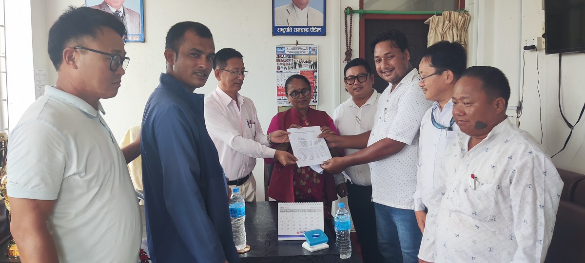 मेयरको कार्यकक्षमै पुगेर वडा नम्बर ३ का वडाध्यक्ष भाष्कर न्यौपाने, ६ का मनोज खुलाल, ७ का भवानी चेम्जोङ, ८ का सन्तकुमार फेउदिन र वडा नम्बर ९ का डिल्ली फेम्फूले हस्ताक्षर गरेको ज्ञापन पत्र संयुक्त रूपमा बुझाएका हुन्।