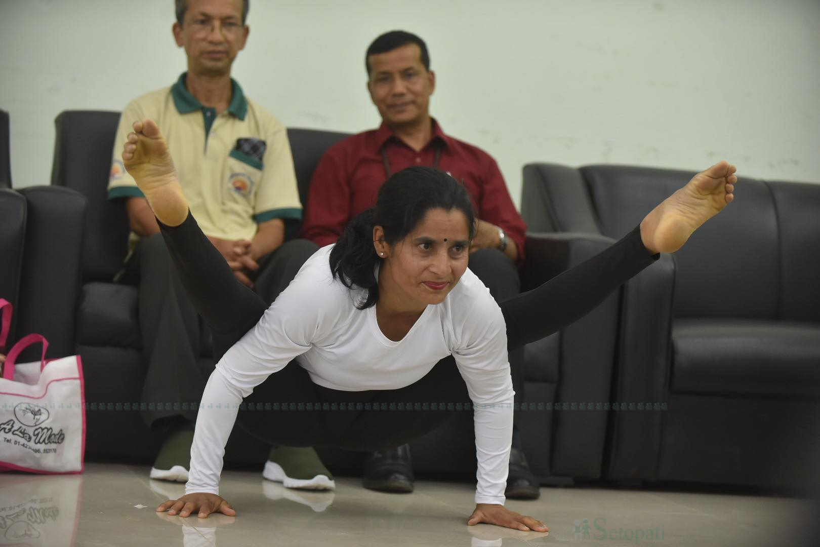 एमाले अध्यक्ष केपी शर्मा ओली, उपाध्यक्ष विष्णु पौडेल, उपमहासचिव प्रदिप ज्ञवाली लगायत नेताहरू सहभागी थिए। कार्यक्रममा योगका आसन पनि देखाइएका थिए।
