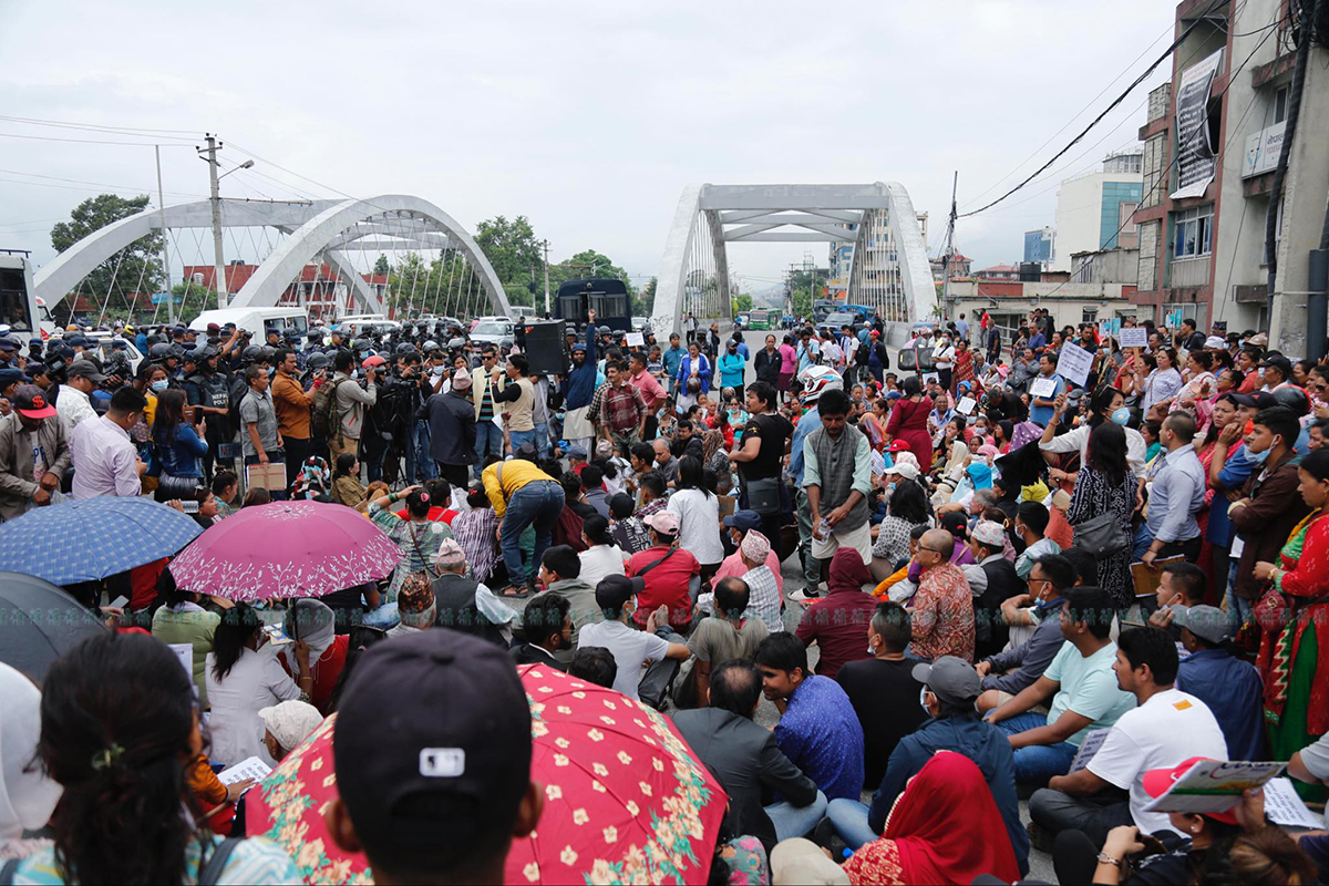 सहकारी पीडितहरूले काठमाडौंको नयाँ बानेश्वरमा प्रदर्शन गरेका छन्।