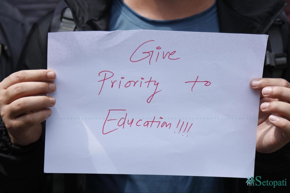 आइतबार बिहान १० बजे नेविसंघ निकट विद्यार्थीहरू पोष्टर र प्लाकार्डसहित नाराबाजी गर्दै बालुवाटार प्रधानमन्त्रीको सरकारी निवास बालुवाटार घेर्न पुगेका हुन्।
