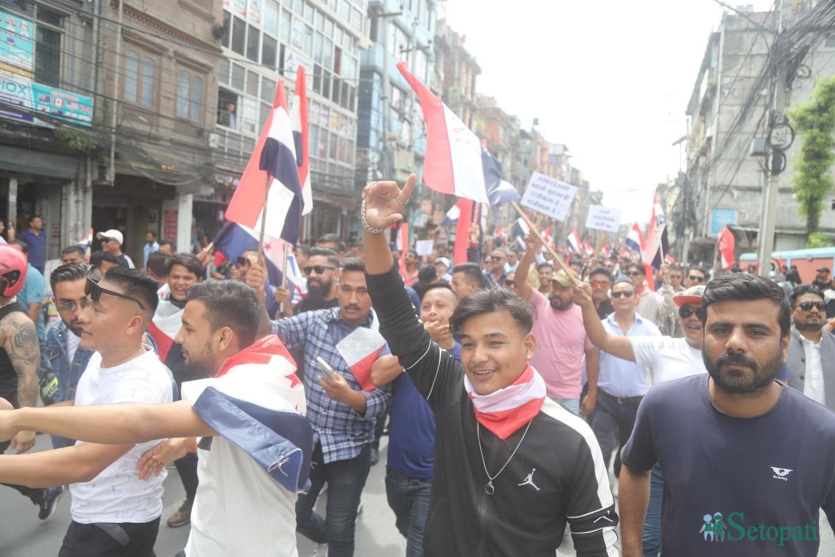 रत्नपार्कको शान्तिबाटिकामा आज दिउँसो तरूण दलले प्रदर्शन र विरोध र्याली निकालेको हो।
