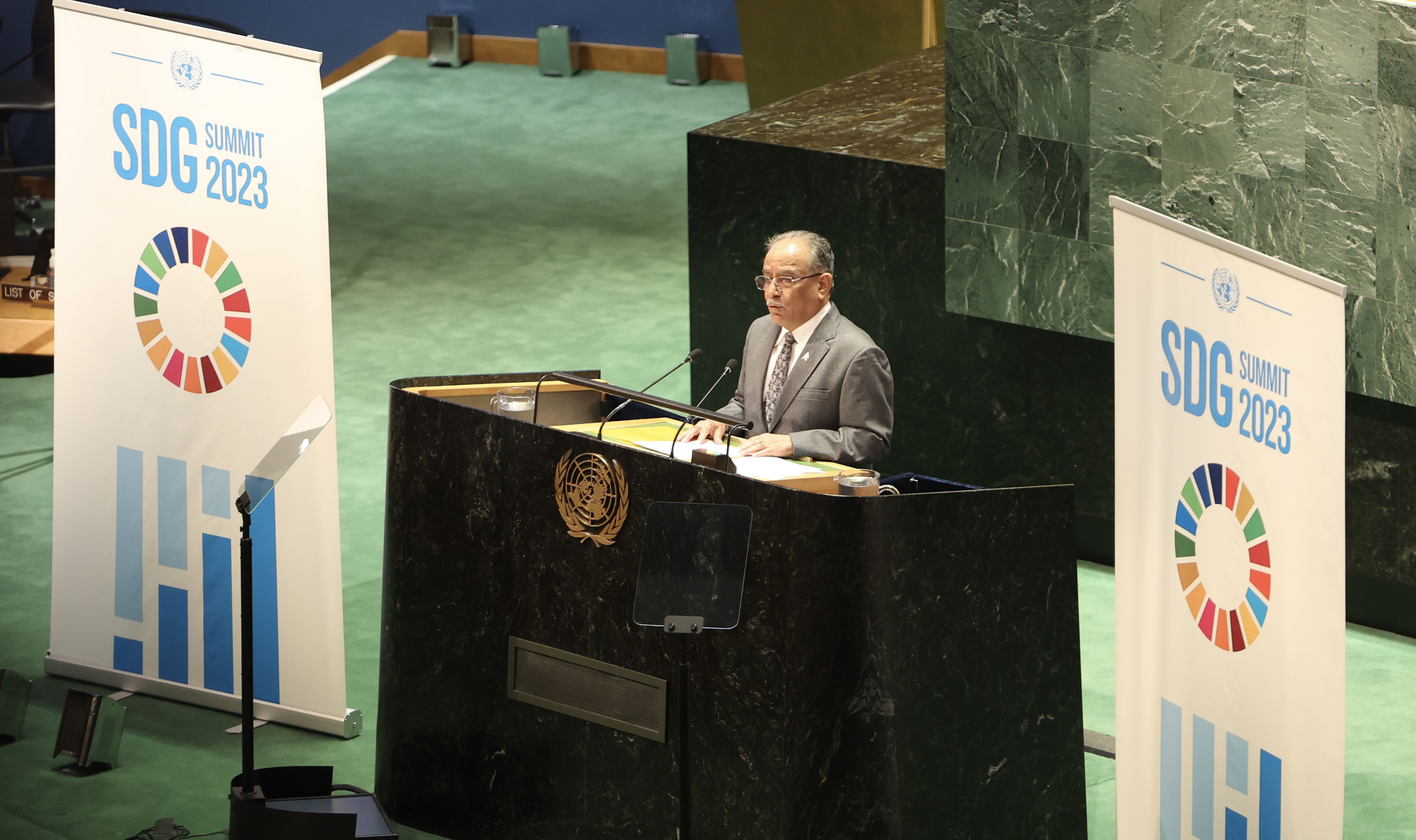 संयुक्त राष्ट्रसङ्घको ७८औं महासभाअन्तर्गतको ‘विश्व सहश्राब्दी समिट’लाई अतिकम विकसित देशहरूको तर्फबाट सोमबार सम्बोधन गर्दै प्रधानमन्त्री प्रचण्डले भने, ‘आजको मितिमा हामीहरू विश्व सहश्राब्दी लक्ष्य २०३० को उद्देश्य हासिल गर्न आधा बाटोमा रहेका छौं, यो हासिल गर्नका लागि हामीहरू गम्भीरतापूर्वक सही मार्गमा रहेका छौं।