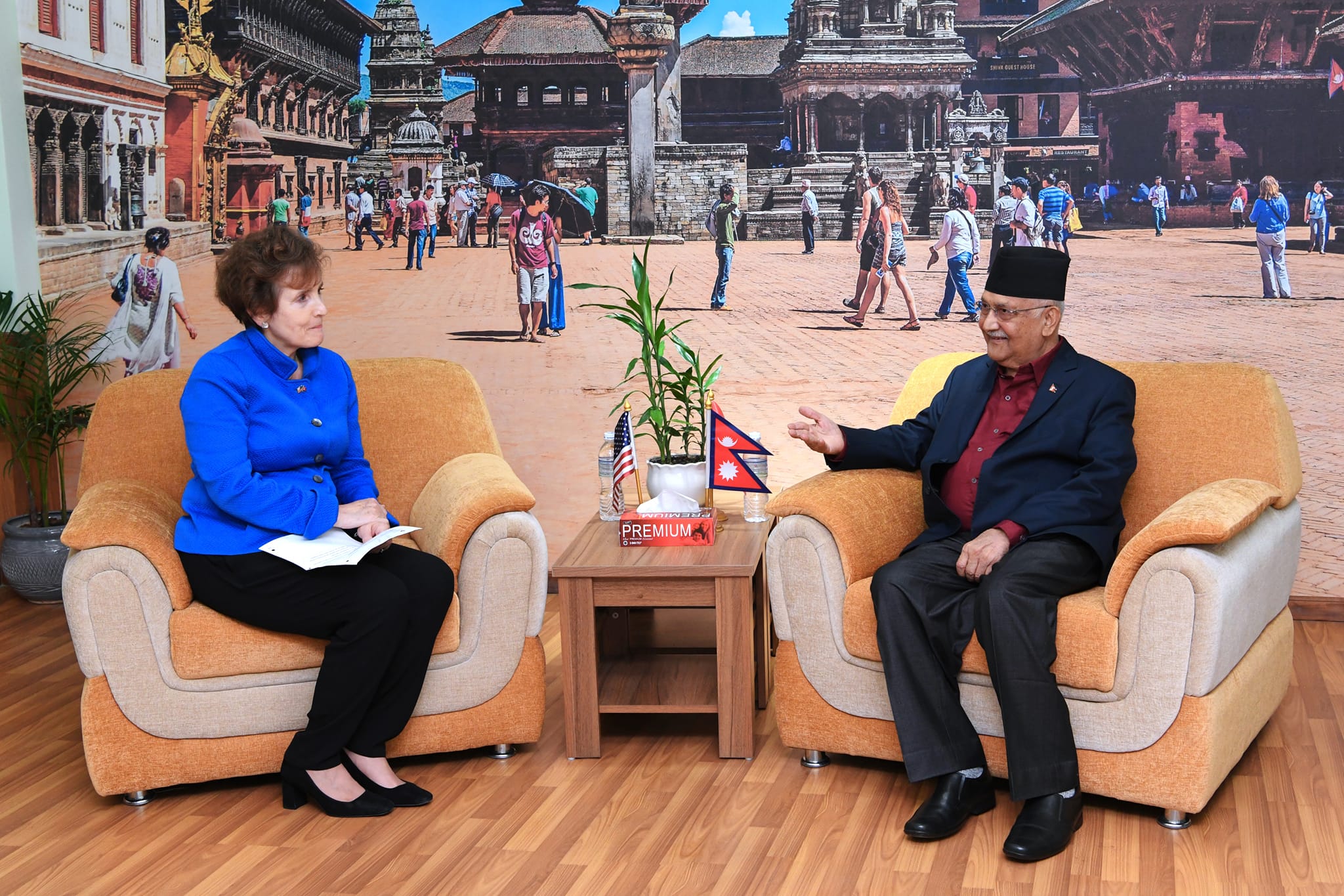 नेकपा (एमाले) का अध्यक्ष केपी शर्मा ओली र नेपाल भ्रमणमा रहेकी मिलेनियम च्यालेन्ज कर्पोरेशन (एमसिसी)का कार्यकारी निर्देशक एलेक्स अलवाइडले भेट गरेकी छन्।