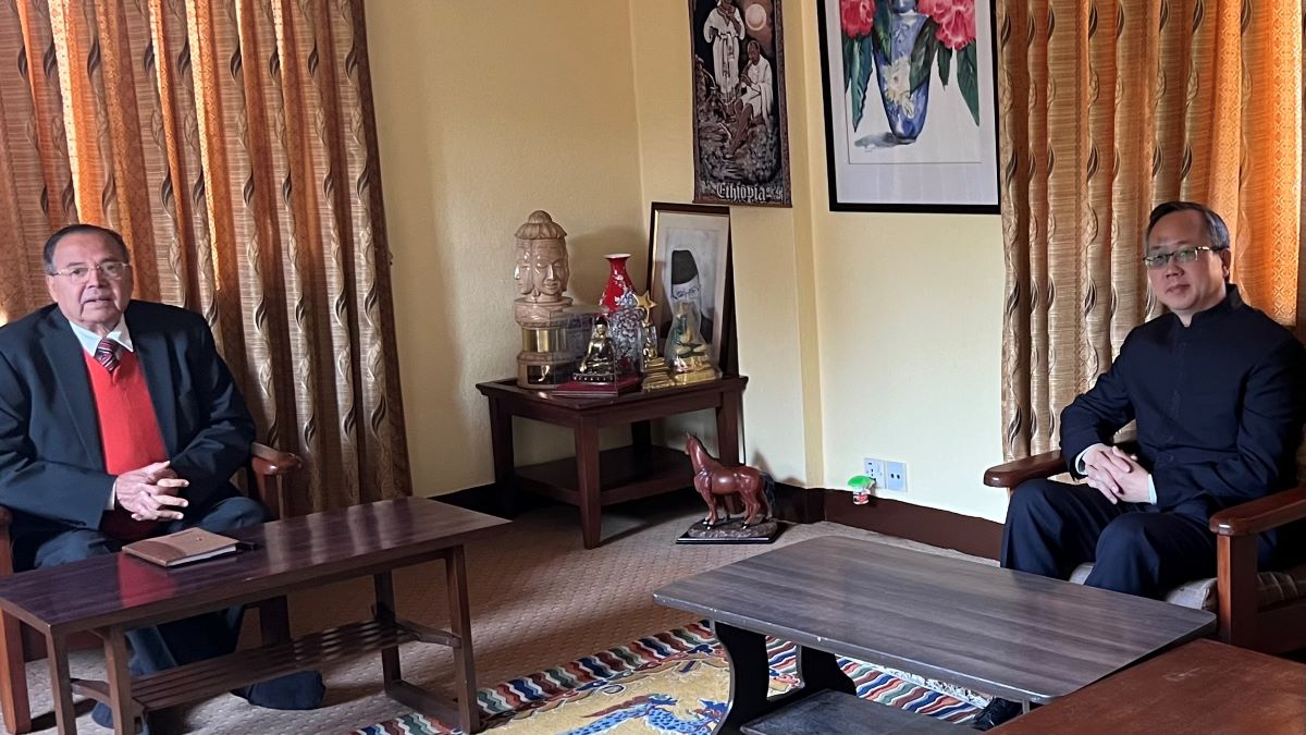 आइतबार बिहान डल्लुस्थित निवासमै पुगेर राजदूत सङले खनालसँग भेटवार्ता गरेका हुन्।