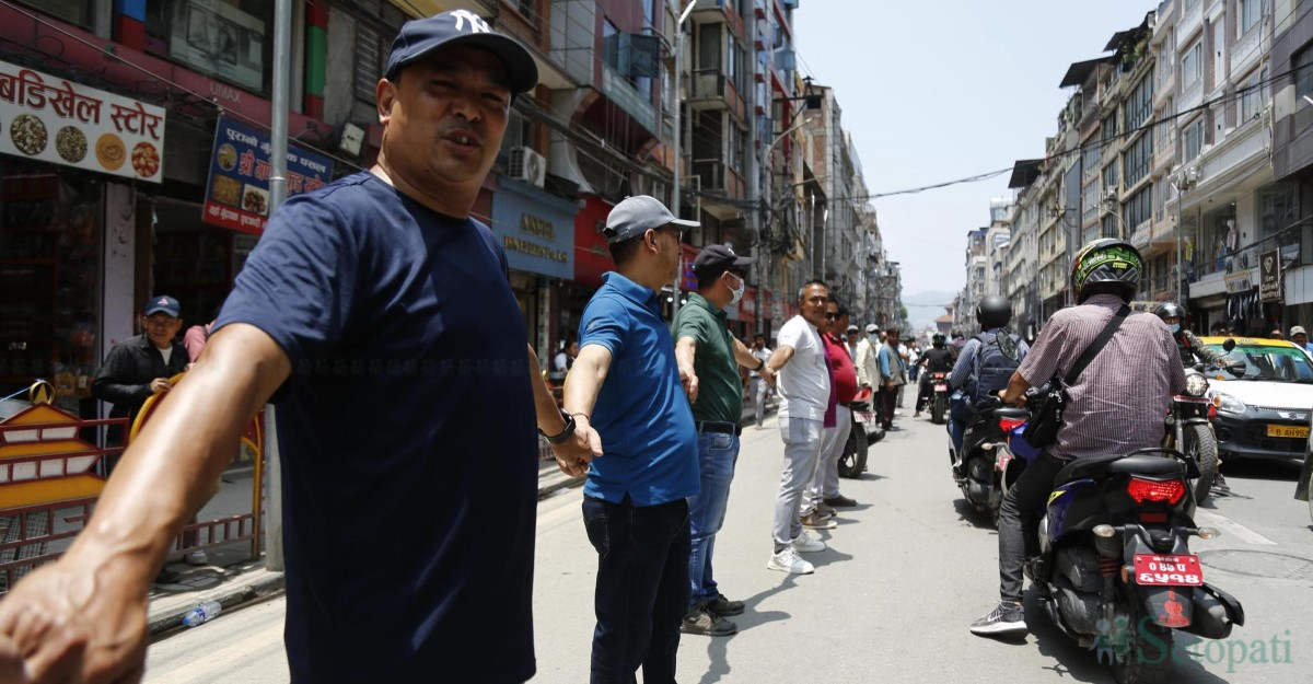 उनीहरूले ‘नयाँ सडक बचाऊँ’, ‘न्यूरोड साँघुरो गर्न पाइँदैन’ उल्लिखित ब्यानर प्रदर्शन गरेका छन्।