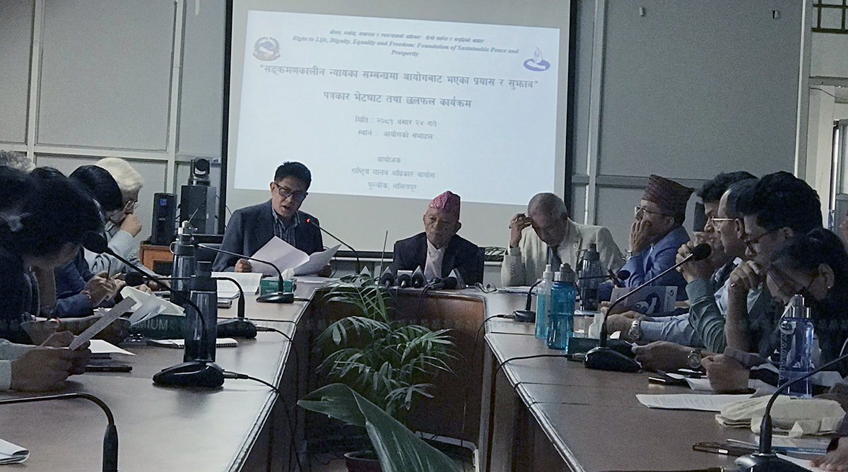 सो अवसरमा आयोगले सङ्क्रमणकालीन न्यायका सम्बन्धमा हालसम्म गरेका प्रयास र सार्वजनिक गरेका धारणाहरु समेटेको राष्ट्रिय मानव अधिकार आयोग र सङ्क्रमणकालीन न्याय सम्बन्धी प्रतिवेदन सार्वजनिक समेत गरेको थियो।—न्युज एजेन्सी नेपाल
