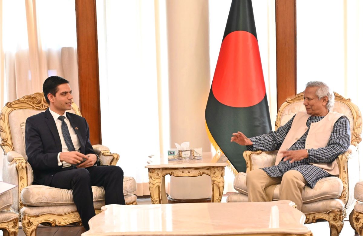 बंगलादेशका लागि नेपालका राजदूत घनश्याम भण्डारीले त्यहाँका अन्तरिम सरकार प्रमुख मोहम्मद युनुससँग मंगलबार भएको शिष्टाचार भेटमा द्विदेशीय सम्बन्धलाई नवीकृत गर्दै आर्थिक सहकार्य र साझेदारीमा जोड दिएको ढाकास्थित नेपाली राजदूतावासले जनाएको छ।