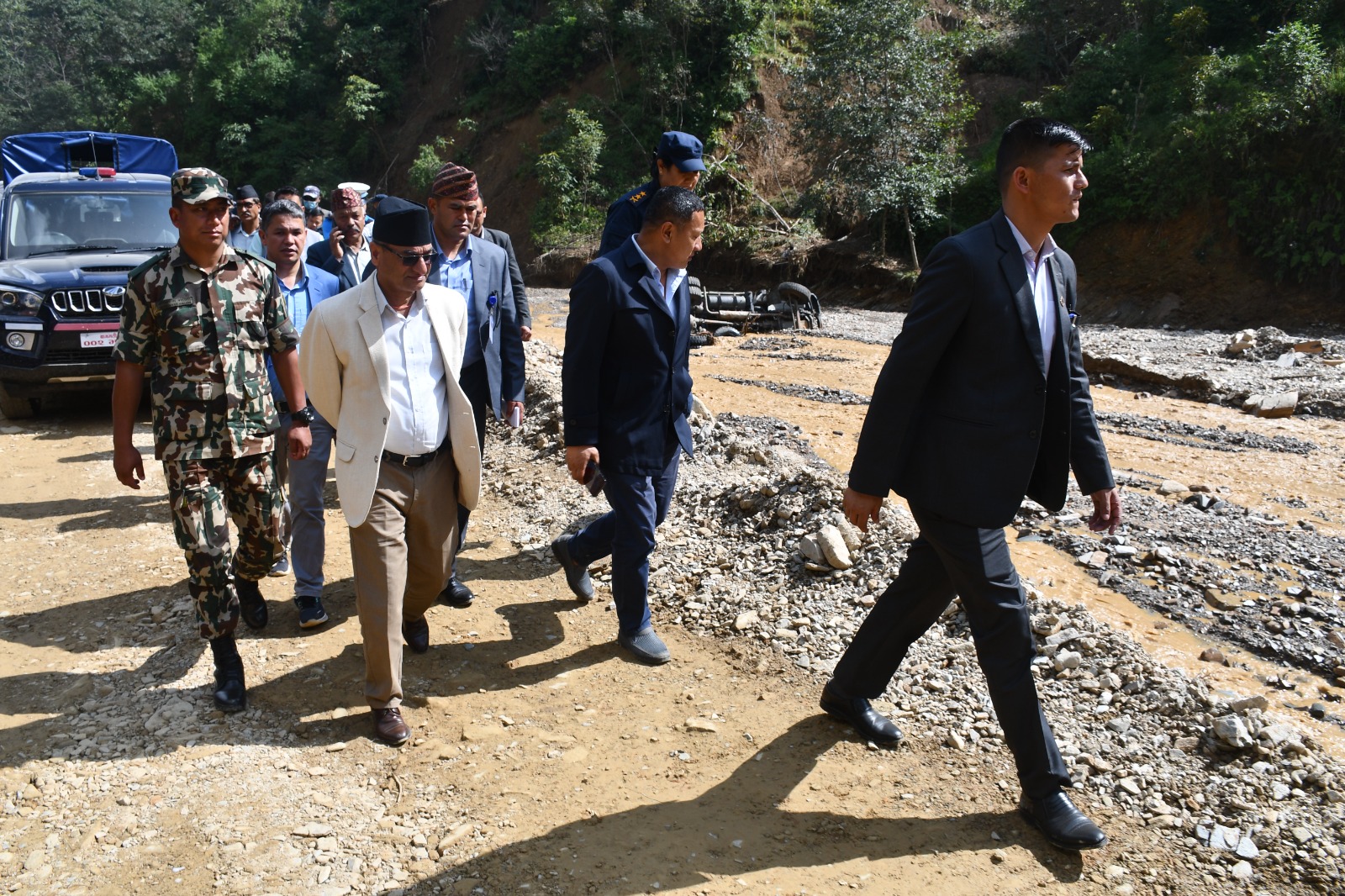 गृहमन्त्री रमेश लेखक, भौतिक पूर्वाधार तथा यातायातमन्त्री देवेन्द्र दाहाल र रक्षामन्त्री मानवीर राईसहितको टोलीले काभ्रेको मंगलटार, सिन्धुलीको खुर्काेट, सिन्धुपाल्चोकको चौतारा, ललितपुरको गोटीखेलका लागि प्रस्थान गरेका छन्।