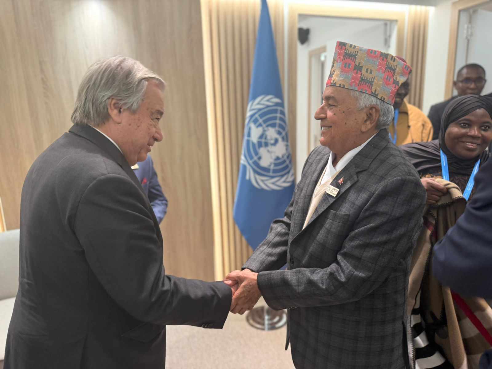 सोमबारदेखि अजरबैजानको बाकुमा जारी कोप २९ को सम्मेलन अन्तर्गत संयुक्त राष्ट्रसंघका महासचिव एन्टोनियो गुटेरेसले अल्पविकसित राष्ट्रहरूका राष्ट्र/सरकार प्रमुखहरूसँग आज यहाँ गरेको सामूहिक भेटघाट कार्यक्रममा राष्ट्रपति पौडेलले यस्तो आग्रह गरेका हुन्।