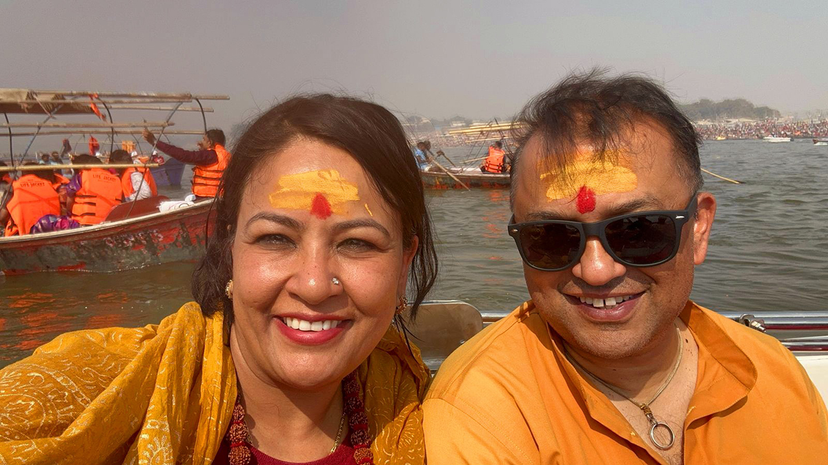 नेपाली कांग्रेसका महामन्त्री गगन थापा र पत्नी अन्जना केसी थापाले महाकुम्भमा डुबुल्की मारेका छन्।