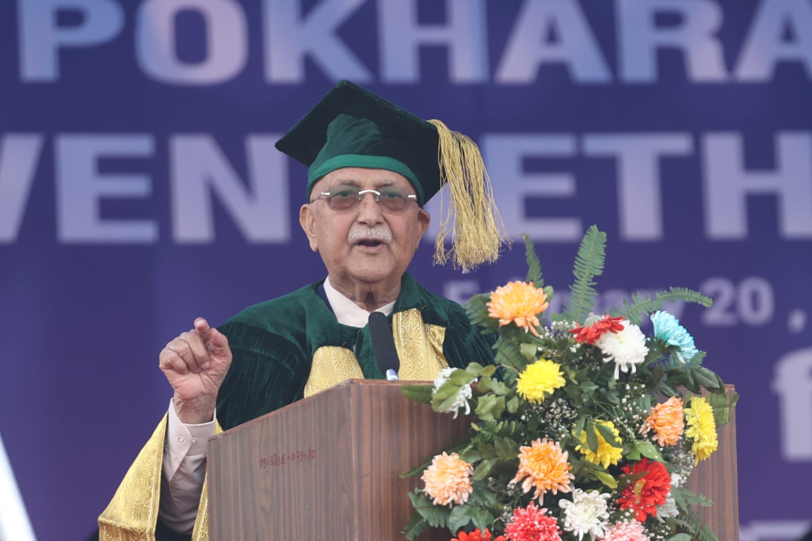 पोखरा विश्वविद्यालयको २० औं दीक्षान्त समारोहलाई सम्बोधन गर्दै प्रधानमन्त्री ओलीले विश्वविद्यालयबाट दीक्षित भएका विद्यार्थीका अभिभावकले घरमै राम्रो शिक्षा दिन सकेको बताए।