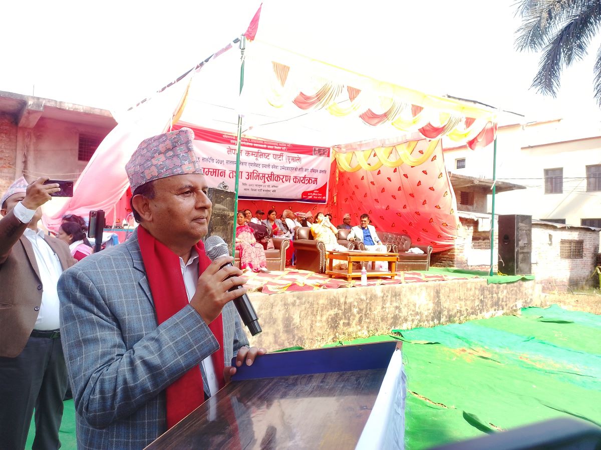 नेकपा (एमाले)स्थानीय विकास विभागले शनिबार नेपालगञ्जमा आयोजना गरेको स्थानीय तह निर्वाचनमा नेकपा (एमाले)बाट प्रत्यासी उम्मेदवारलाई सम्मान तथा अभिमुखीकरण कार्यक्रममा उनले जरा केन्द्रित अभियान र मिसन–२०८४ ले एमालेलाई अझ सशक्त शक्तिका रूपमा स्थापित गर्ने बताए।