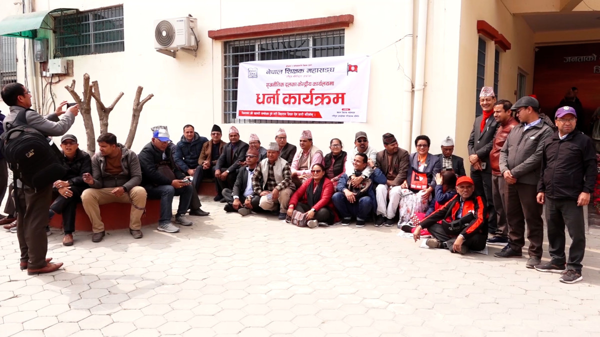 शिक्षक महासंघले नेकपा एमालेको पार्टी कार्यालयमा धर्ना दिएको छ।