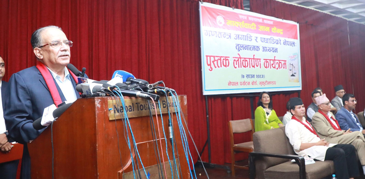 काठमाडौंमा आयोजित ‘गणतन्त्र अगाडि र पछाडिको नेपाल : एक तुलनात्मक अध्ययन’ नामक पुस्तक लोकार्पण समारोहलाई सम्बोधन गर्दै अध्यक्ष दाहालले भने, ‘जुनसुकै दलका भए पनि महिलाहरू पदमा आउँदा मलाई गर्व लाग्छ, विद्रोहको औचित्य प्रमाणित भएको छ।’