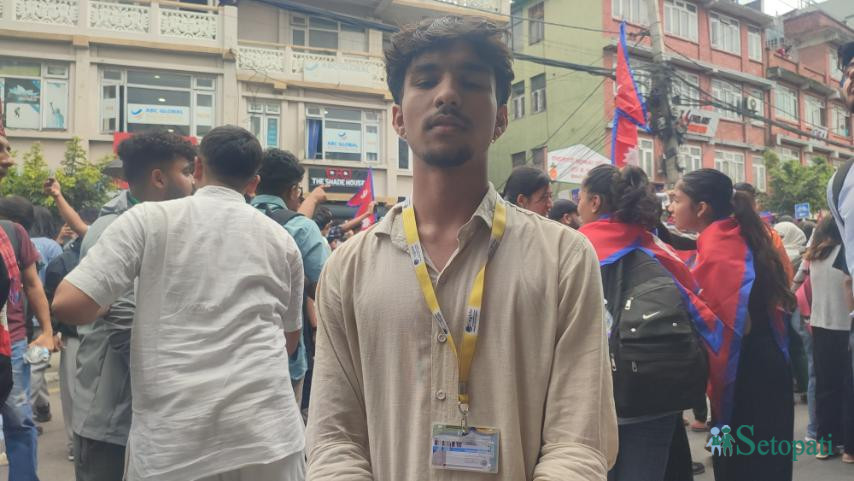 १७ वर्षका उनी काठमाडौंमा जारी जेन–जी आन्दोलनमा सहभागी सयौं नवयुवामध्ये एक हुन्।