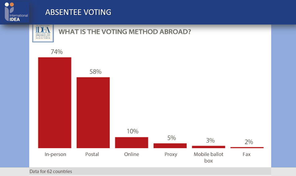 उक्त अध्ययनअनुसार अहिले मतदान केन्द्र पुगेर मत खसाल्ने प्रणालीको प्रयोग ७० प्रतिशत छ। हुलाकबाट मत हाल्ने प्रणालीको प्रयोग ५८ प्रतिशत छ। अनलाइन मतदान प्रणालीको प्रयोग १० प्रतिशत छ। पाँच प्रतिशतले आफ्नो मत अर्को कुनै व्यक्तिलाई खसाल्न दिने प्रणाली अवलम्बन गरेका छन्।