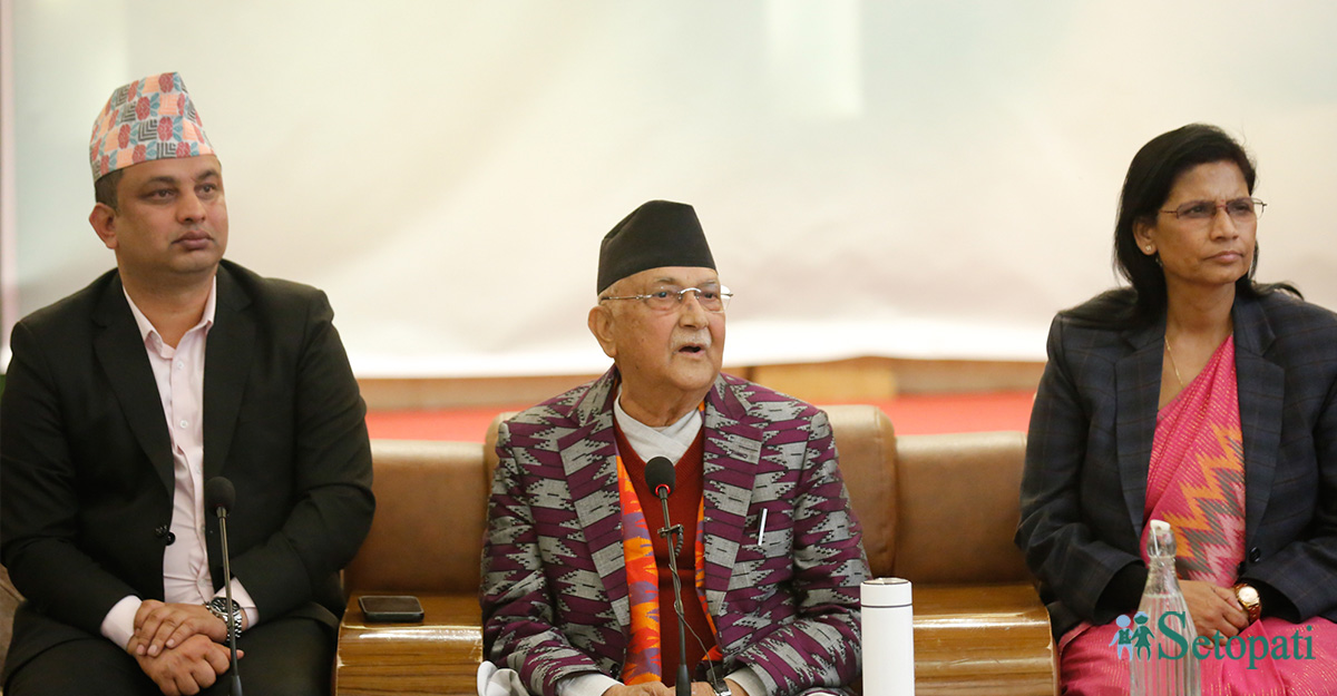 'दुई प्रमुख दलका शीर्ष नेताले भेटवार्ता गर्दा देशको बारेमा कुरा गरेनन् होला? देशको चिन्ता गरेनन् होला? नागपञ्चमीमा टाँसे जसरी गोबरले टाँसिदिएको यो सरकारको बारेमा कुरा गरेनन् होला?,' ओलीले बिहीबार सम्पादकहरूसँग भने।