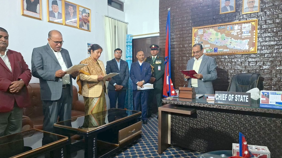 प्रदेश प्रमुख सुरेन्द्र लाभ कर्णले दुवै मन्त्रीलाई पद तथा गोपनीयताको शपथ ग्रहण गराएको प्रदेश प्रमुखको कार्यालयका निमित्त सचिव शत्रुधन यादवले जानकारी दिए।