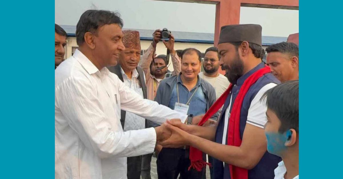 प्रतिनिधिसभा सदस्यमा निर्वाचित रास्वपाका खानलाई एमालेका उम्मेदवार खिमलाल भट्टराईले खादा लगाइदिएर बधाई दिएका छन्।