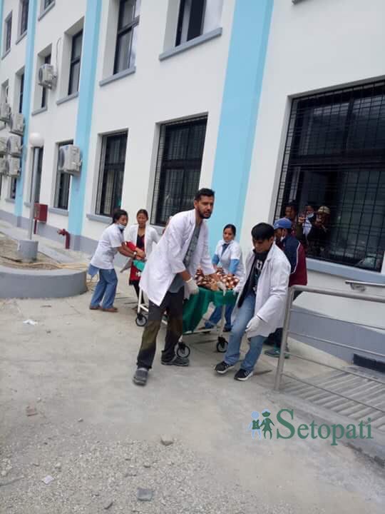 यस्तै प्रहरीले बल प्रयोग गर्दा तीन जना डाक्टर गम्भीर घाइते भएका छन्। घाइते हुनेमा डा. सन्दिप श्रेष्ठ, डा. सिद्धार्थ खाती र उमेश काफ्ले छन्। उनीहरू सबैको अहिले प्रतिष्ठानकै बेडमा राखेर उपचार भइरहेको प्रतिष्ठानकी नर्स सपना साहीले सेतोपाटीलाई जानकारी दिइन्।