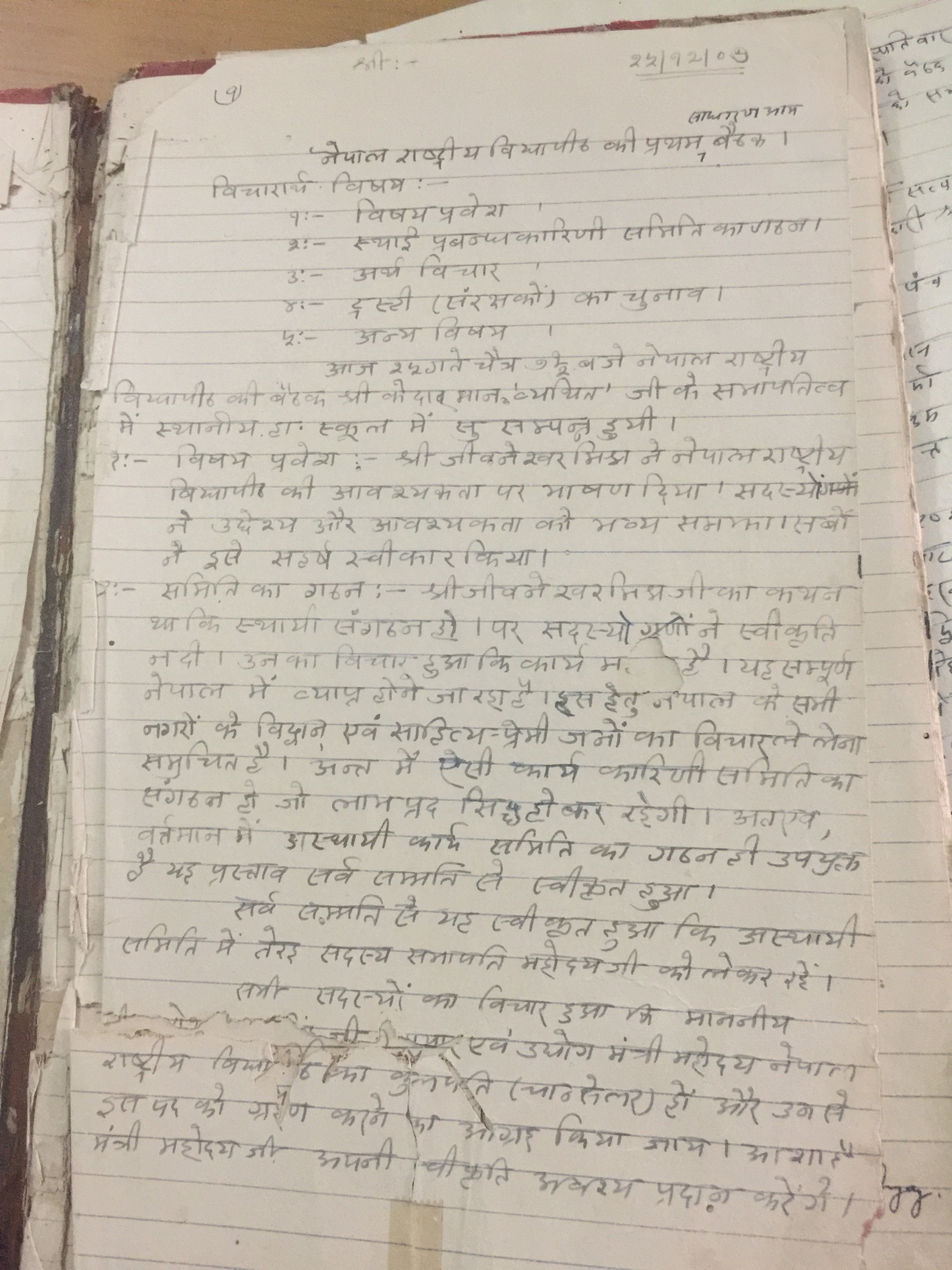 रोचक के छ भने, नेपाली भाषा र साहित्यका एकसेएक व्यक्तित्वहरू उपस्थित त्यस बैठकको 'माइन्युट' चाहिँ हिन्दी भाषामा लेखिएको छ।