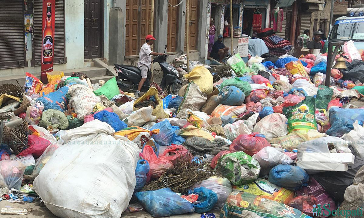 महानगरपालिकाले करिब १ महिनादेखि फोहोर नउठाएपछि स्थानीयले फालेको फोहोरले बजारनै दुर्घन्धित भएको छ।
