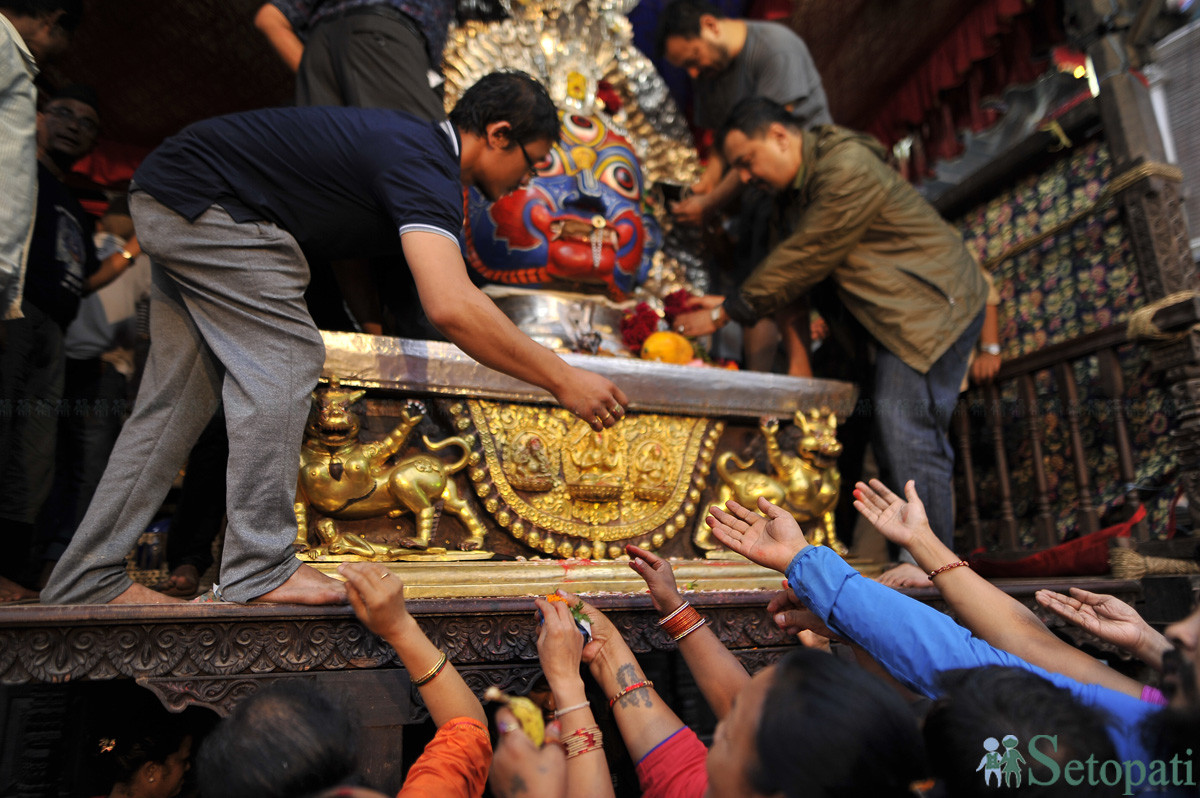 शनिबार फूलैफूलमा सजिएका भैरवको बीचमा ‘तारा’ चिन्ह कुँदिएको थियो। आइतबार पुग्दा भैरवमा ‘श्री’ लेखिएको थियो। सोमबार फेरि त्यो चिन्ह परिवर्तन भयो। चिन्हसँगै दैनिक फूल र लाभाका माला पनि परिवर्तन हुन्थे। धेरैलाई यो यादै हुन्न।