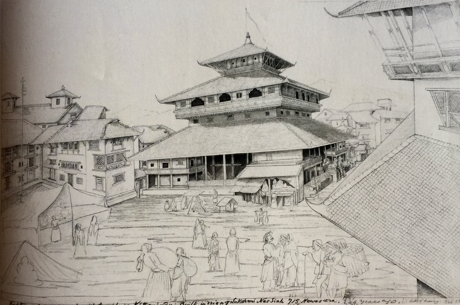 नेपाली चित्रकार राजमान सिंहले सन् १८४४ मा बनाएको काष्ठमण्डपको चित्र।