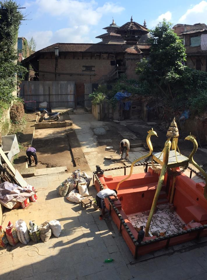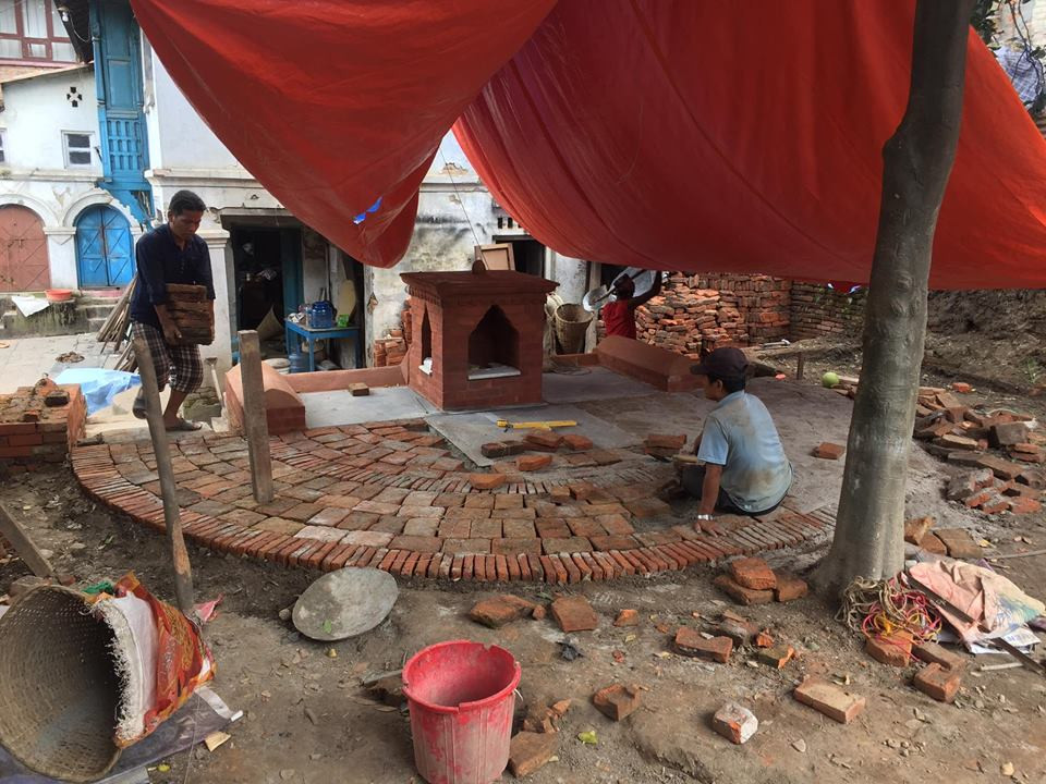 आँगन जिर्णोद्धार गरिँदै। तस्बिर सौजन्य: भूषण शिल्पकार