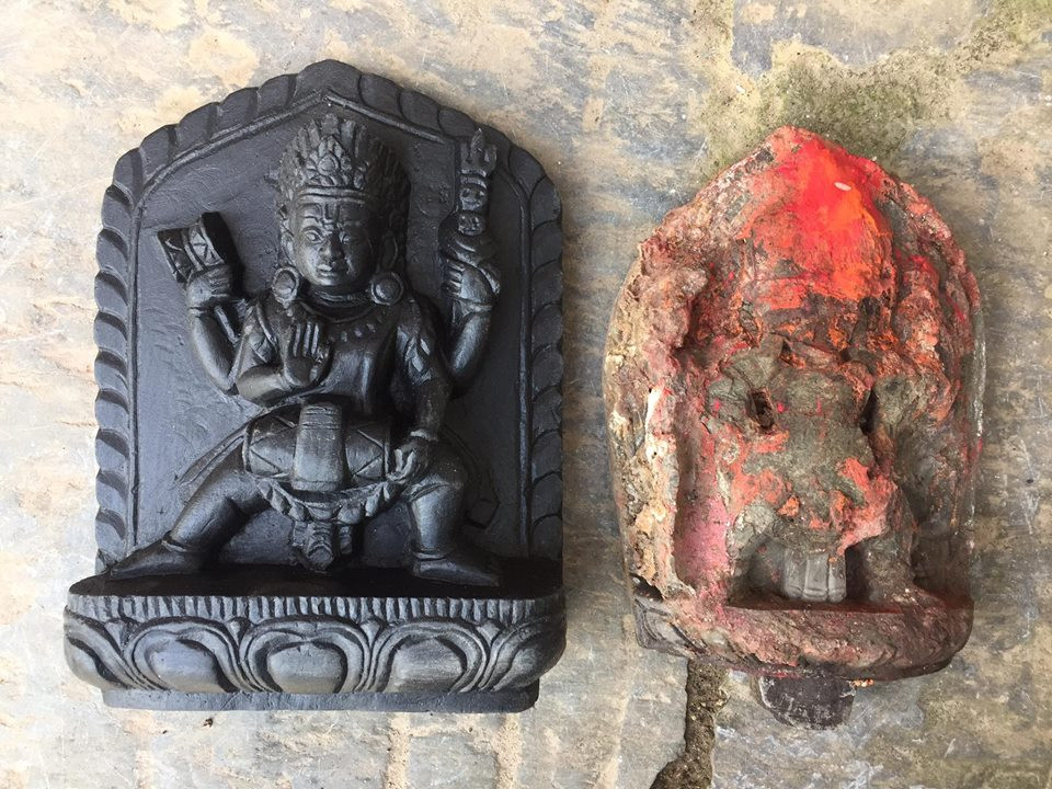 आँगनमा छरपस्ट सामग्री पन्छाउँदै जाँदा एउटा अझै पुरानो मूर्ति फेला परेको उनले बताए। ढुंगाको त्यो मूर्ति पृथ्वीनारायण शाहको पालाभन्दा अगाडि बनेको तथ्य फेला पर्यो।