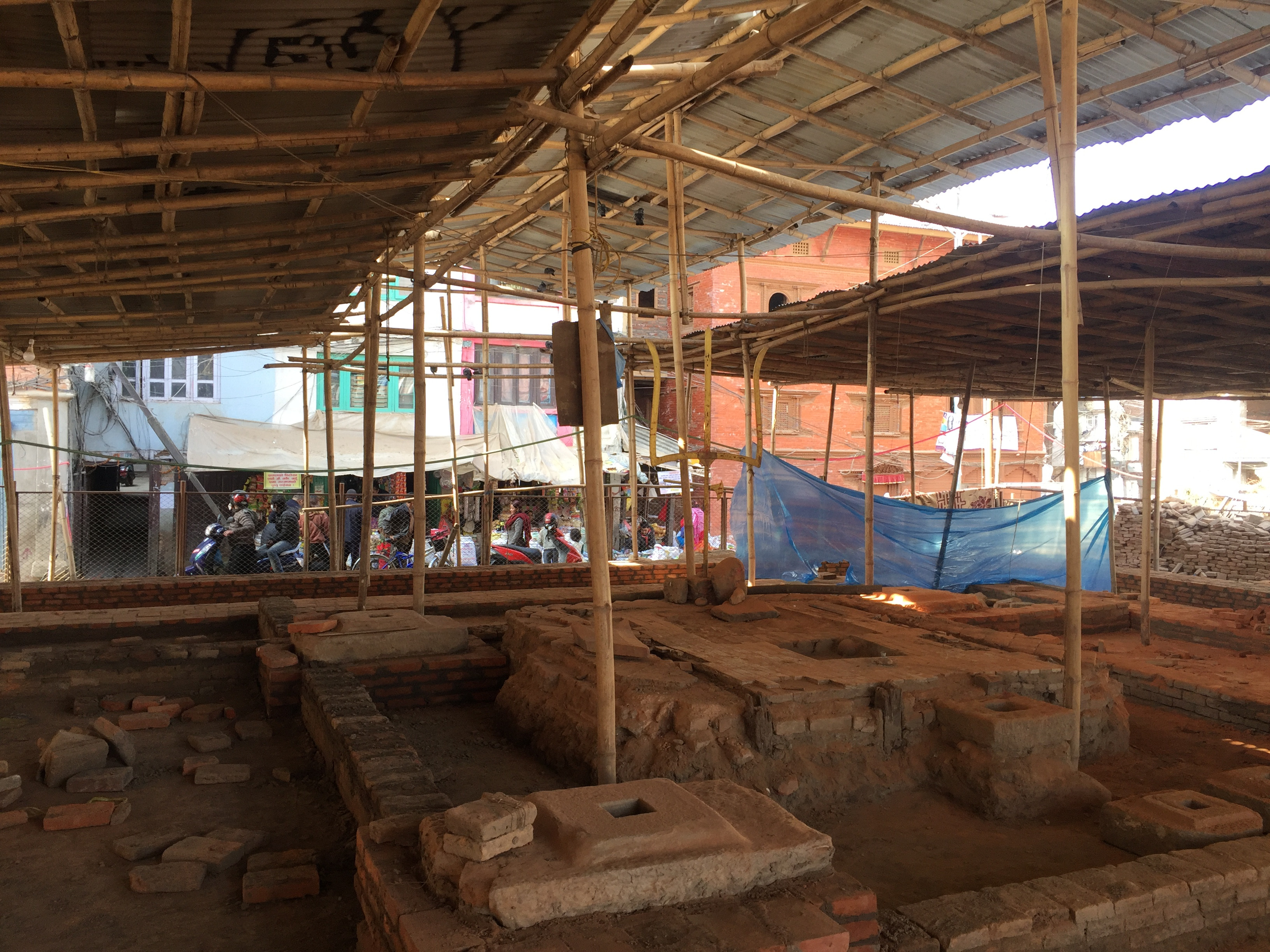 शिल्पकारहरू काठमा कला भर्न व्यस्त छन्। अलि पर ठूला आकारका इँटालाई माटो र बालुवाले अडाउने काम चल्दैछ। पहिले प्रयोग भएका साना इँटा पाखा लगाइएका छन्। जग बनाउने काम लगभग अन्तिम चरणमा पुगेको छ।