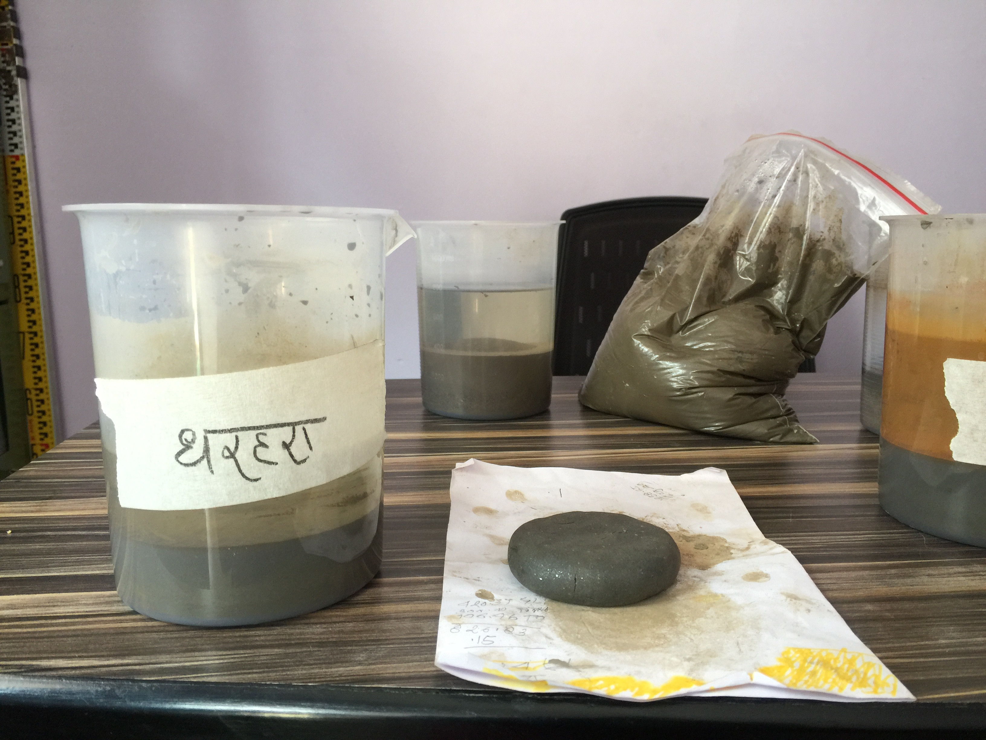 धरहराबाट निकालिएको माटो गुणस्तर परीक्षण गरिँदै। तस्बिर: शान्ति तामाङ/सेतोपाटी