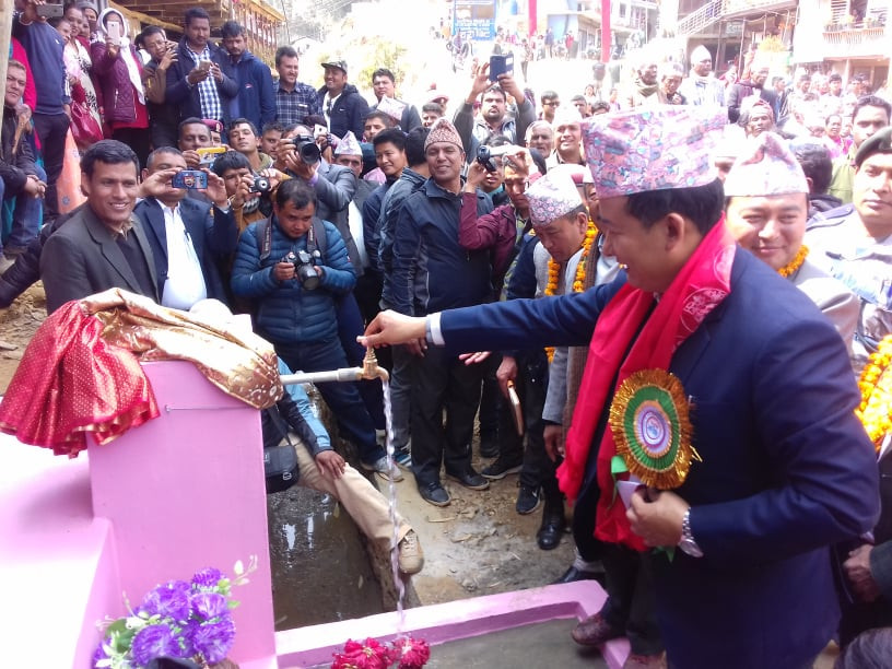 कुम्वायक गाउँपालिका वडा नं. १ मा डिप वोरिङबाट निकालिएको पानीको यासोक बजारमा शनिबार मन्त्री मौसमले धारा खोलेर उद्घाटन गरेका हुन्।